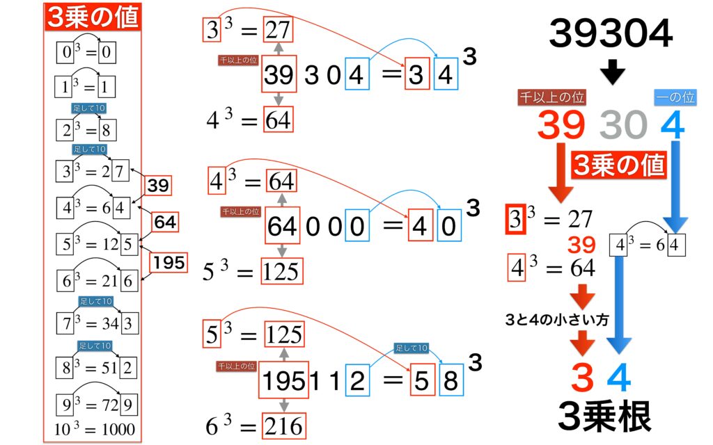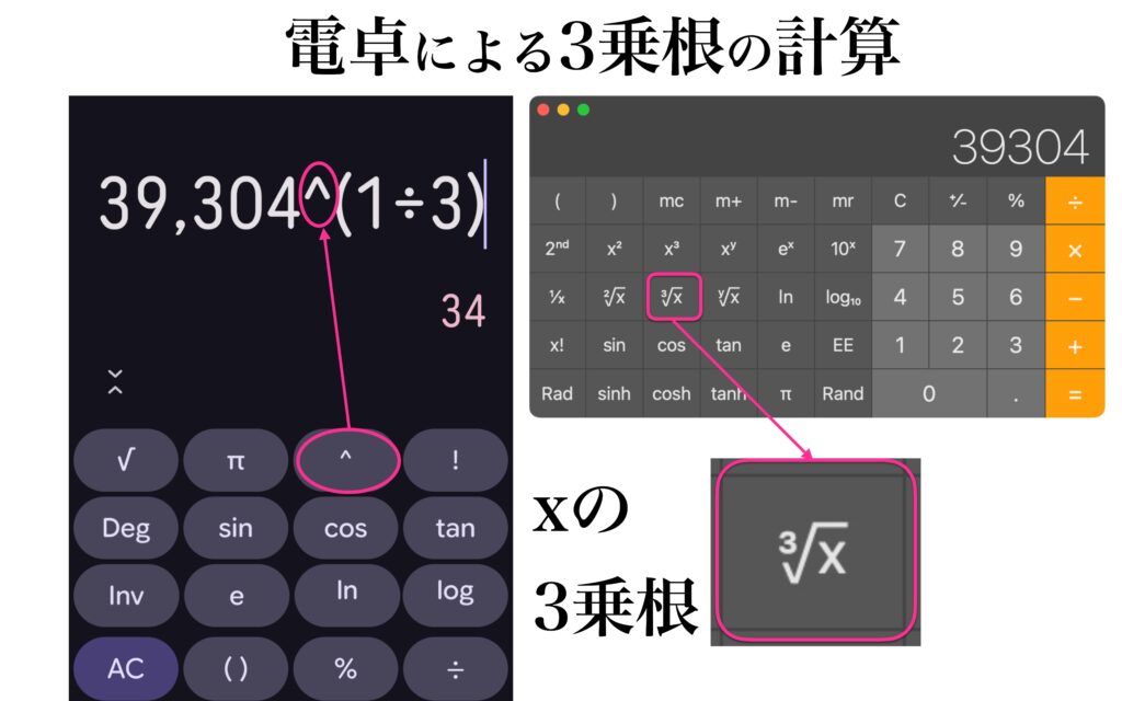 電卓・スマホを使えば3乗の計算はカンタン。では逆の計算はどうでしょう。39304は何を3乗した数でしょう?