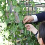 昼休みに学食の生ゴミを回収し、コンポストでたい肥を作り、屋上の菜園で野菜を栽培しています。今年度から回転式のコンポストを使っているので、混ぜる作業が楽になりました。また、初めての試みとして、唐辛子を記念祭で、ハーブをハーブティーに加工して学校説明会で販売し、その際に必要な食品衛生責任者の資格も取りました。