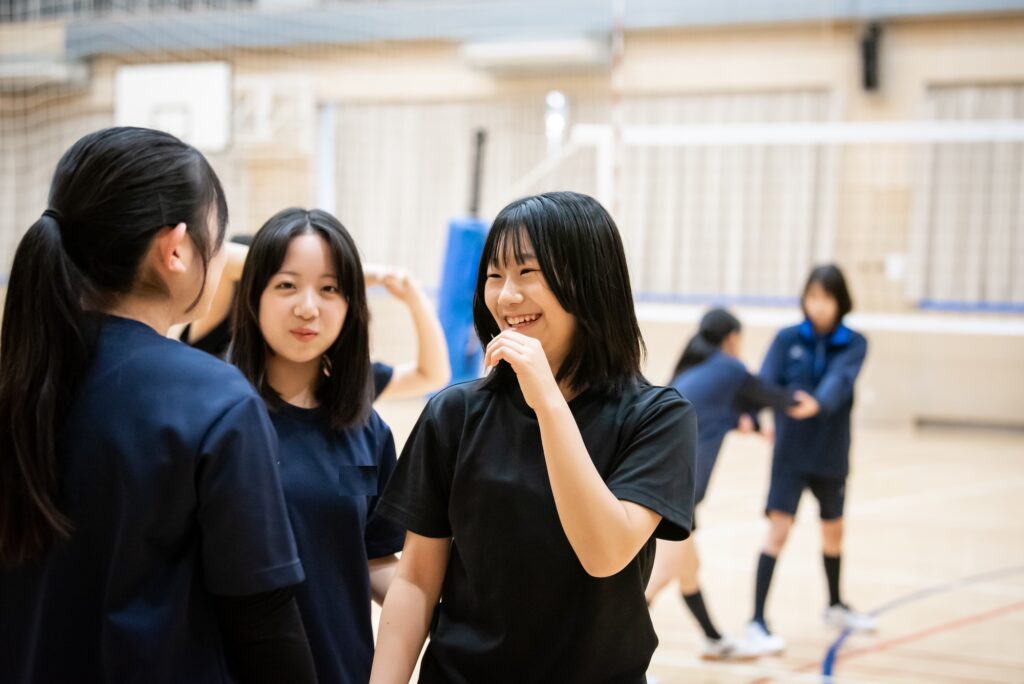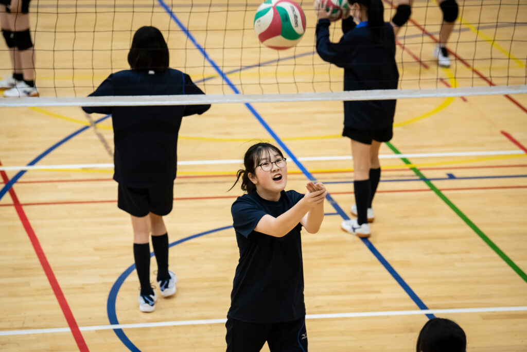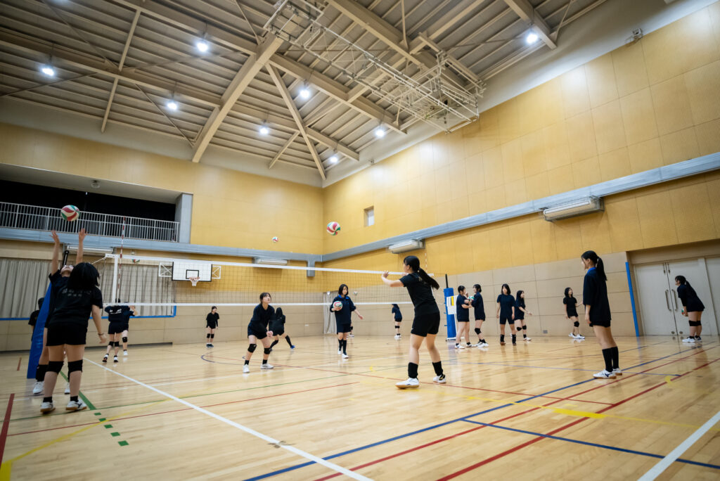 女子バレーボール部は、中学生約20人と高校生約10人が合同で週4日活動。中学生はまだ公式戦に出たことはないが、女子からも公式戦出場への意欲が見られるようになったと山﨑先生は語る。